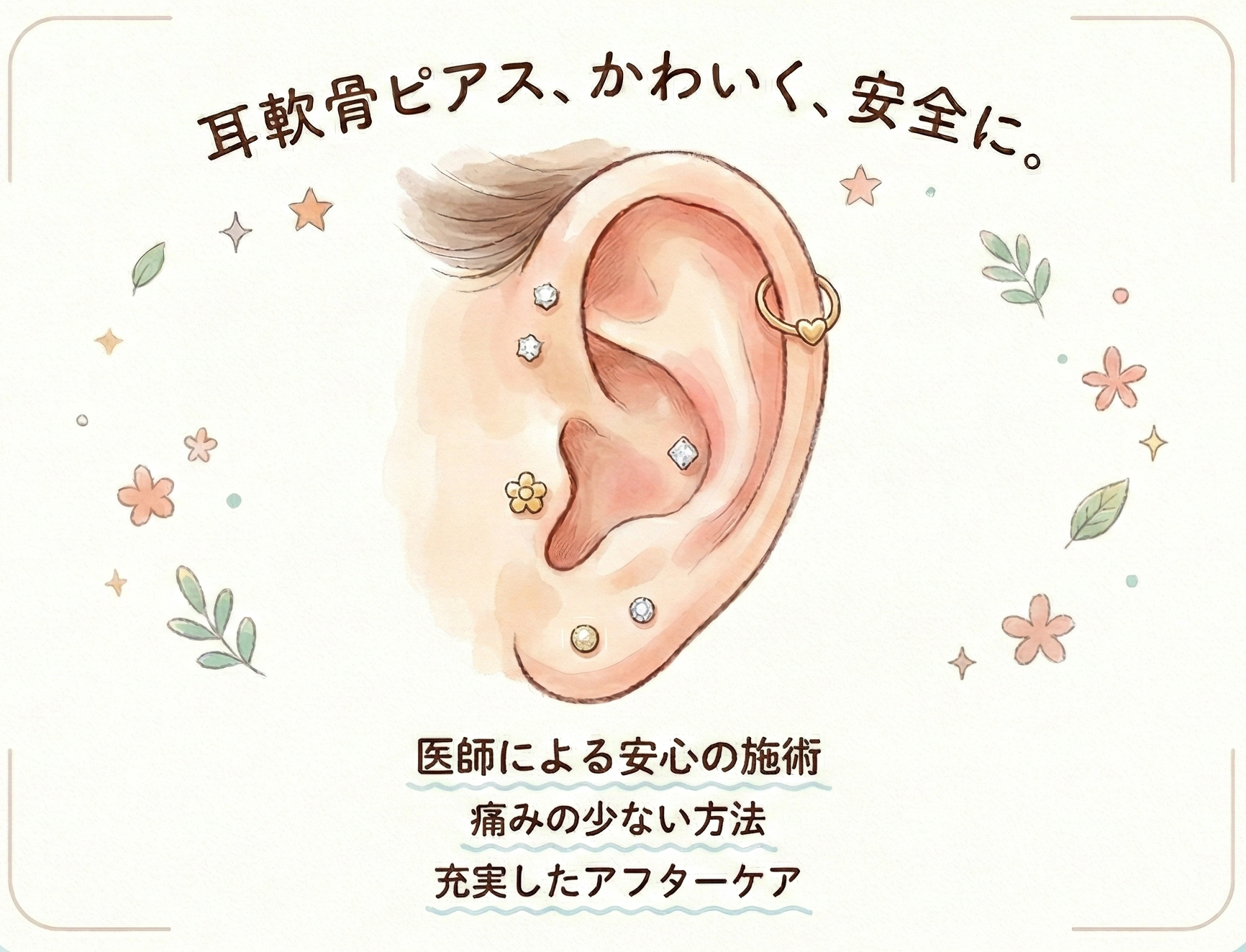 【新メニュー】☆耳軟骨ピアス☆ 安全でおしゃれな耳元を医療機関で